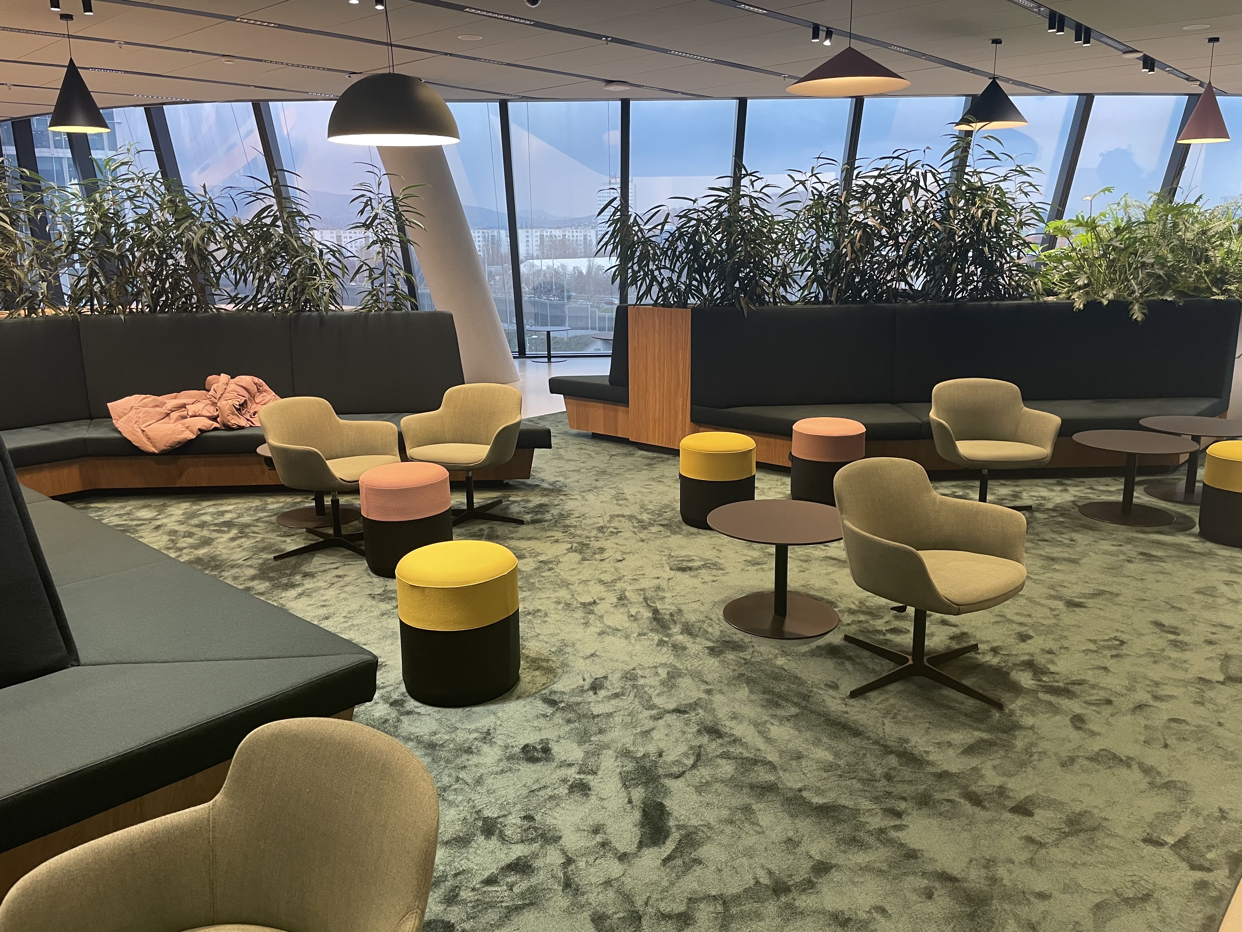 Az egy részlegen dolgozó MOL-kollégák egy közös, többszintes téren osztozkodnak – ezek a háromemeletes tripletek gondoskodnak arról, hogy könnyebben folyjon a közös munka. A tervezésnél az otthonos, barátságos megoldásokon kívül az is szempont volt, hogy inspiráló tereket hozzanak létre: ilyen például a dolgozói kert, ahol egy oázis várja a munkatársakat. A pálmaház szerű kertből a kilátás is azt szolgálja, hogy elvonulva, hatékonyan végezhessék azok is a munkájukat, akik csendre vágynak.