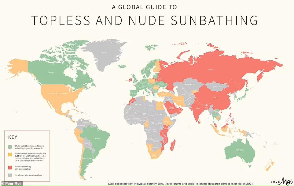 A Pour Moi fürdőruha gyártó cég hetekig gyűjtötte az adatokat a félmeztelen és meztelen napozásról, hogy ezzel segítse a vásárlói döntését, merre induljanak nyaralni, hiszen napról napra egyre több brit tervezi az országon kívüli nyaralását.