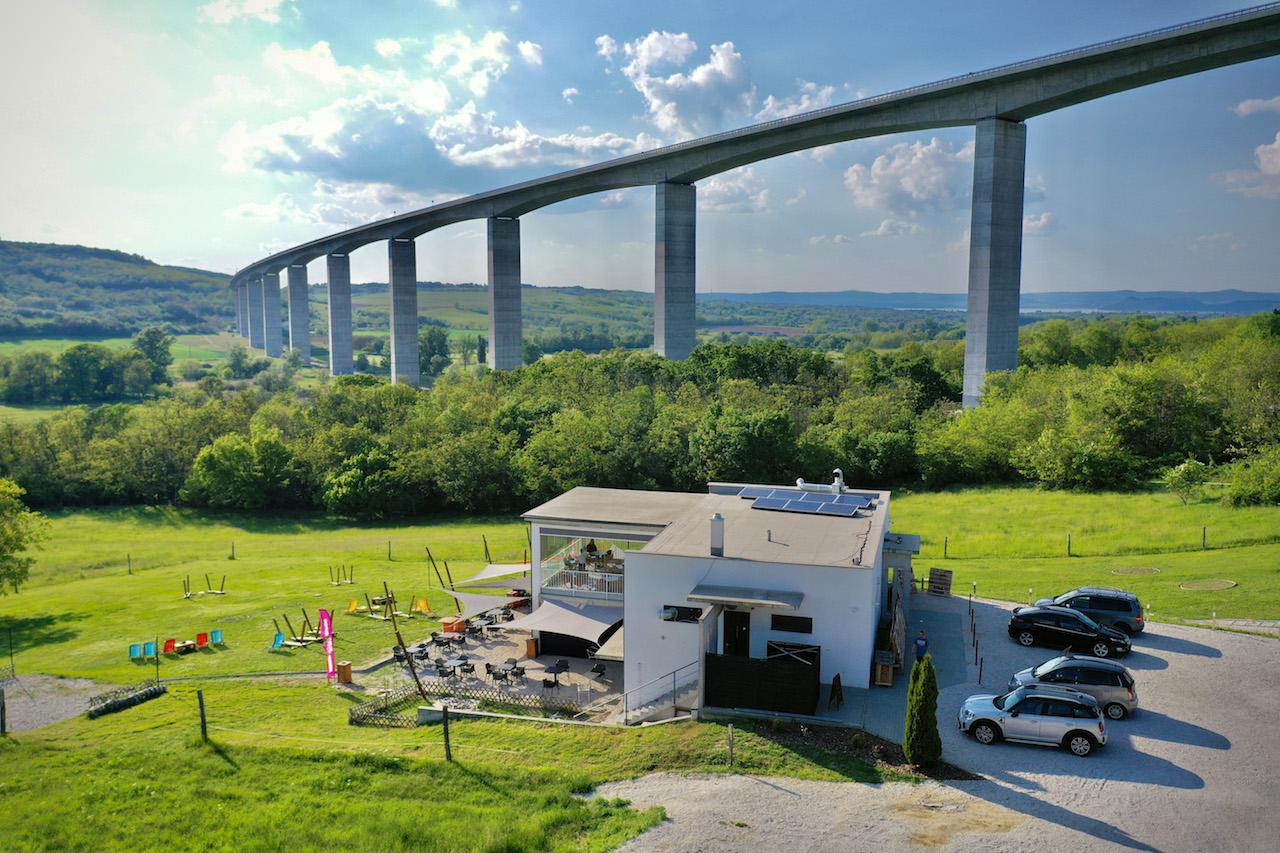 „Pazar panoráma a vasbeton indusztriál és a zöld természet harmóniájában. Gasztroélménnyel vagy csak egyszerű heverészéssel párosítva a hegyek-völgyek árnyékában.”