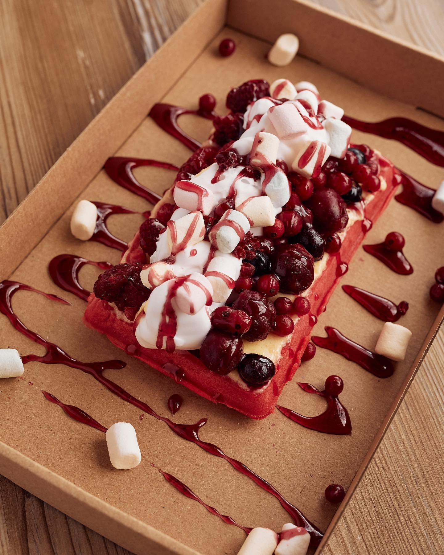 A Waffle Wonderland nem válogat, hogy melyik gofri legyen a fő profilja, inkább mindegyiket kínálja: legyen szó holland karamellás Stroopwaffle-ről, a kelt tésztás belga gofriról vagy a most divatos buborék gofriról – náluk minden van. Valentin napra is sok finomsággal készülnek, a fenti képen látható klasszikus rácsos gofri is ilyen, amit páros menüben lehet kérni: páros „Waffle And Love" menüben, amiben 2 piros színű buborék vagy belga gofri van választható feltétekkel vagy „Páros Stroopwaffle menü" 2 db szívecske alakú holland ostyával választható feltétekkel vagy ugyanez csokiba mártva szórócukorral.