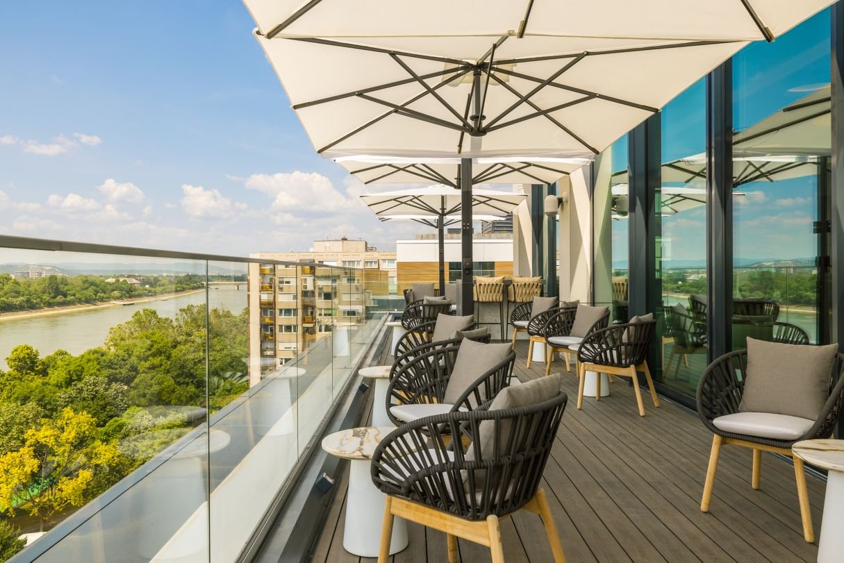 Nem régen nyitott meg az új Four Point® by Sheraton Budapest Danube a Duna pesti oldalán, a 13. kerületben. A 105 szobás szálloda június eleje óta várja a vendégeket; nemcsak a hotelbe, hanem a rooftop bárba is. A Margit-szigetre néző panorámával büszkélkedő, ízléses enteriőrrel berendezett bár a 9. emeleten kapott helyet, ahonnan egy pohár koktéllal a kezünkben fürkészhetjük a szigetet, bámulhatjuk a zenélő szökőkút fényeit vagy a Dunán le-fel úszó hajókat. Az új sky bar előnye, hogy közel van a belvároshoz, de mégis kiesik a nyüzsgő, zajos rengetegből, így ez egy csendes, nyugodt hely, ahol nemcsak este fogod jól érezni magadat, de napközben is feltöltődhetsz.