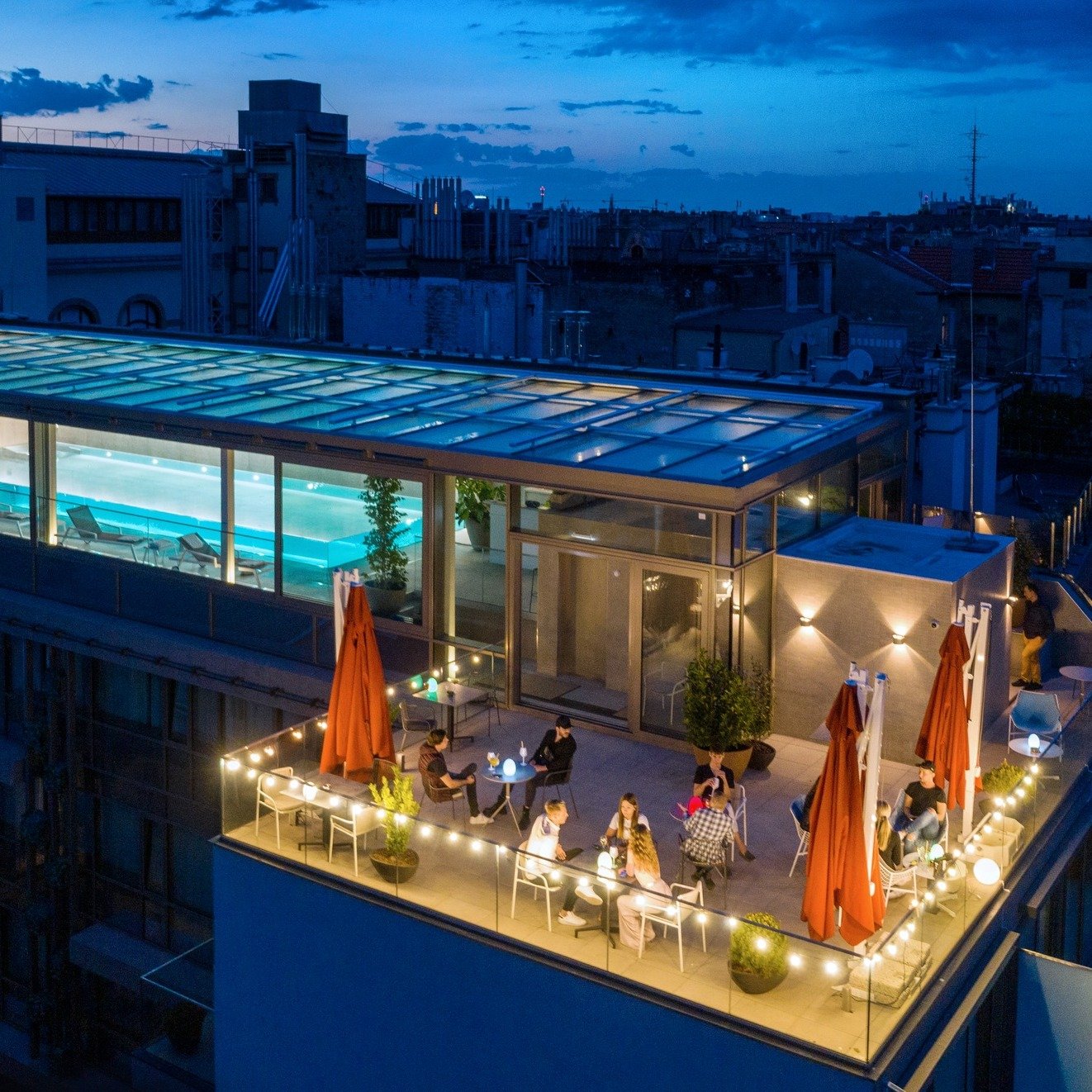 A hatodik kerületi Cortile Hotel találod ezt a mini teraszt, ahol szuper zártkörű partit is lehet szervezni és még csobbanhatsz is egyet a medencében, ha már elviselhetetlen a forróság. Ha nem vagy a hotel vendége, akkor 10 ezer forintért használhatod a medencét, ha pedig este érkezel a sky barba, akkor mindenképp foglalj asztalt. Az előző két hellyel ellentétben a Cortile teraszán nincs lehetőség ételfogyasztásra, csak itallapról rendelhetsz, viszont azon találsz pár igen különleges tételt. Cseppet sem átlagos hely ez itt, a Városliget közelében talán nincs is hozzá hasonló.
