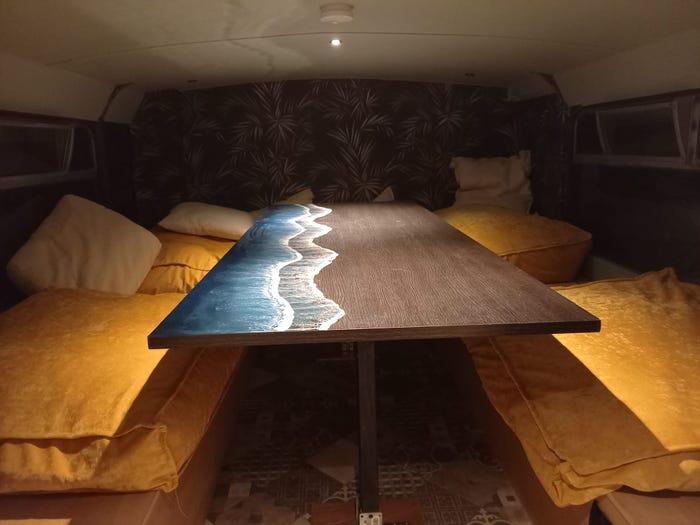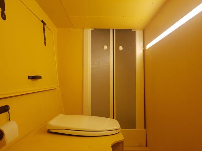 Az elszánt holland csapat a rengeteg tervezésnek és az aprólékos kivitelezésnek köszönhetően egy nagyon vagány és egyszerre praktikus szálláshelyet hozott létre, melyben például arra is figyeltek, hogy a fürdőszoba mindenkinek kényelmes legyen. A mosdó nem a busz belsejéből, hanem kívülről közelíthető meg, így a mosdó használójának van egy kis privátszférája.