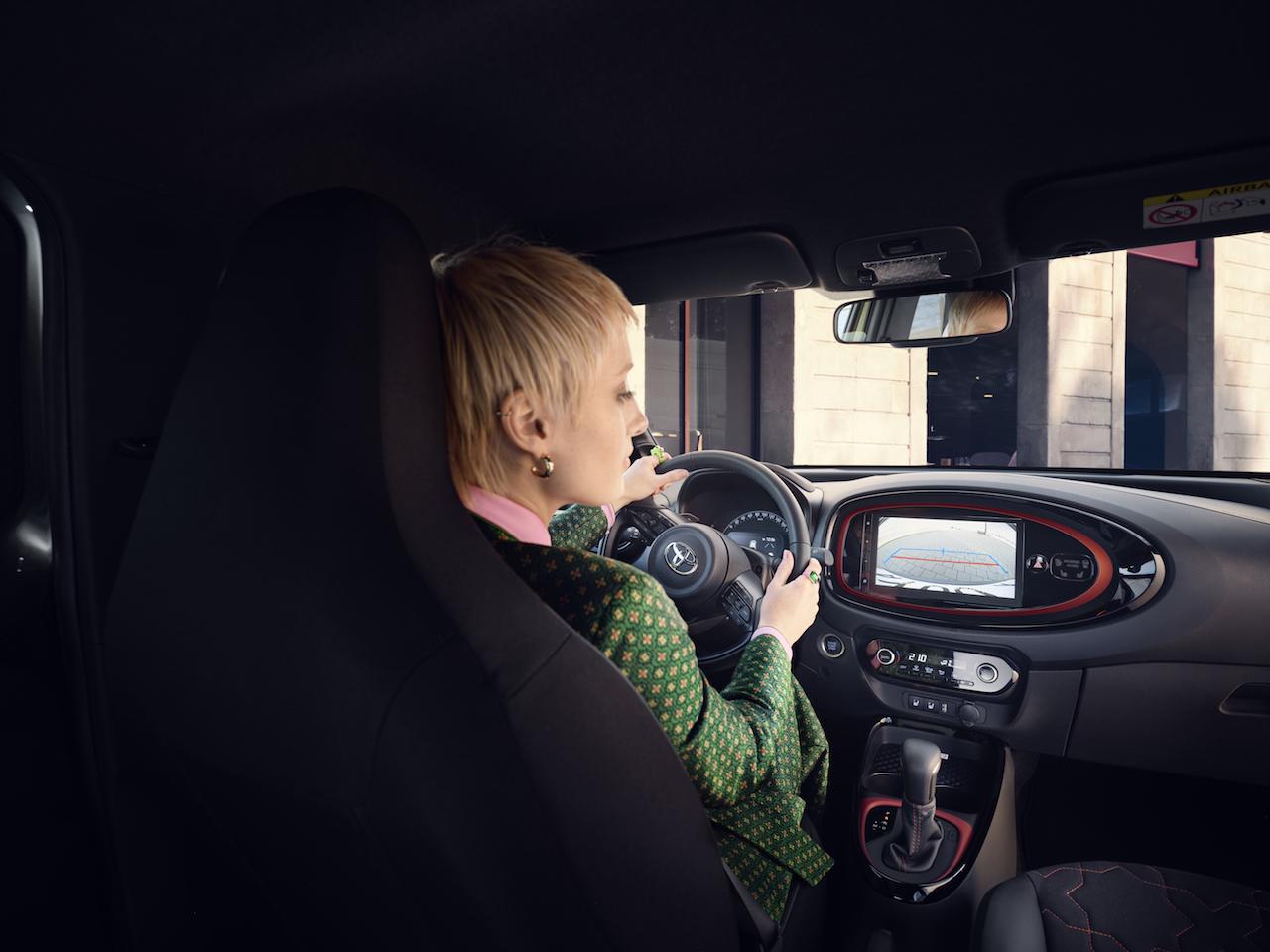 A fürge és remekül manőverezhető kocsi legfőbb terepe azonban a város, ahol a magas üléspozíció előny, miként a kis méret is. Az utóbbi miatt felszereltségben azonban nem kell kompromisszumot kötni, a Toyota Safety Sense biztonsági berendezéseinek tárháza teljes, ahogy a szórakoztató-információs rendszer is hozza a nagyobb kategóriákban is elvárható szintet. Az üdítően egyedi, kilenccolos kijelzővel ellátott központi egység egyértelműen kommunikál, a mobileszközök felismerése és társítása problémamentes, a felhőalapú navigációs rendszer percrekész, a dugókat is segít elkerülni, a parkolósegéd pedig a horpadásokat. Az Aygo Crosshoz letölthető MyT alkalmazás lehetővé teszi, hogy a telefonunkról távvezéreljük az utastér bizonyos funkcióit, például a klímát. A kellemessé tett autózás élvezetére a 300 W összteljesítményű JBL hangszórók teszik fel a koronát.