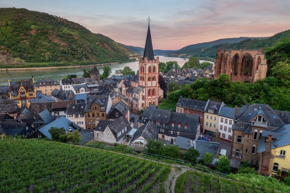 Ez a Rajna menti 2000 fős település főleg borairól híres – ahogy az a képen is látszik, egészen a városig belógnak a szőlőültetvények. A középkori város hangulatát és építészetét tökéletesen megőrizték, a faházak és az eredeti cégérek azonnal visszarepítenek az időben, és ha kedvünk tartja, akkor olyan lakomát is tarthatunk mint 500 évvel ezelőtt az ott élők. Ha pedig igazán autentikus szállást szeretnél, akkor a dombtetőn lévő középkori kastélyban (Burg Stahleck) is aludhatsz, amely youth hostelként működik.