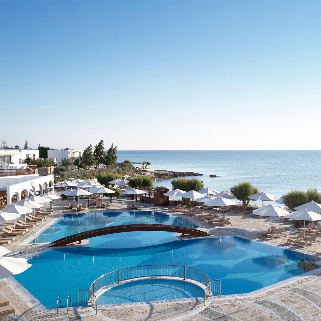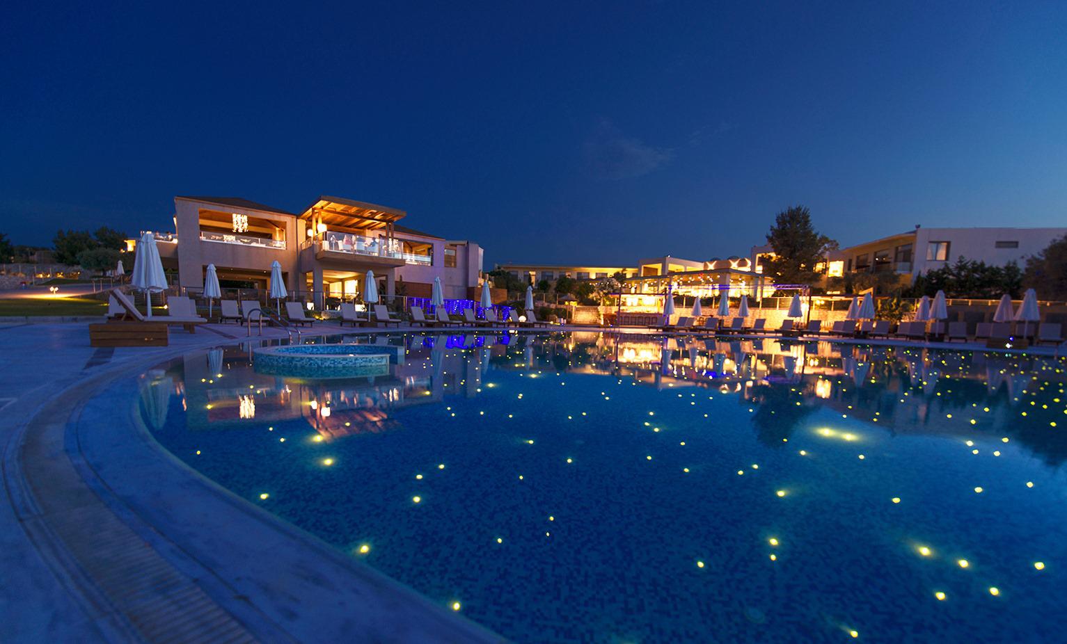 Ez a tengerparti szálloda ideális azoknak a nyaralóknak, akik szeretnek a pihenés mellett aktívan kikapcsolódni is, de ehhez nem szeretnének kimenni a hotel területéről. A görög sziget dél-keleti partján található üdülőhely tökéletes helyszín, ugyanis két medencével, teljes körű szolgáltatást nyújtó gyógyfürdővel és rengeteg szabadidős tevékenységgel, például teniszezéssel, fitneszórákkal és strandröplabdával várja a vendégeket. A szálloda éjszakai szórakoztató programokat is kínál a helyi zenészek és táncosok közreműködésével. Az all-inclusive ellátás tartalmazza az egész napi étkezést a főétteremben, ami korlátlan mennyiségű palackozott bort, sört és üdítőt foglal magában, valamint ingyenesen használhatóak a medence, illetve a tengerpart mellett elhelyezett napozóágyak, napernyők, sőt a gyerekklub, a szauna és a fitneszterem is.
