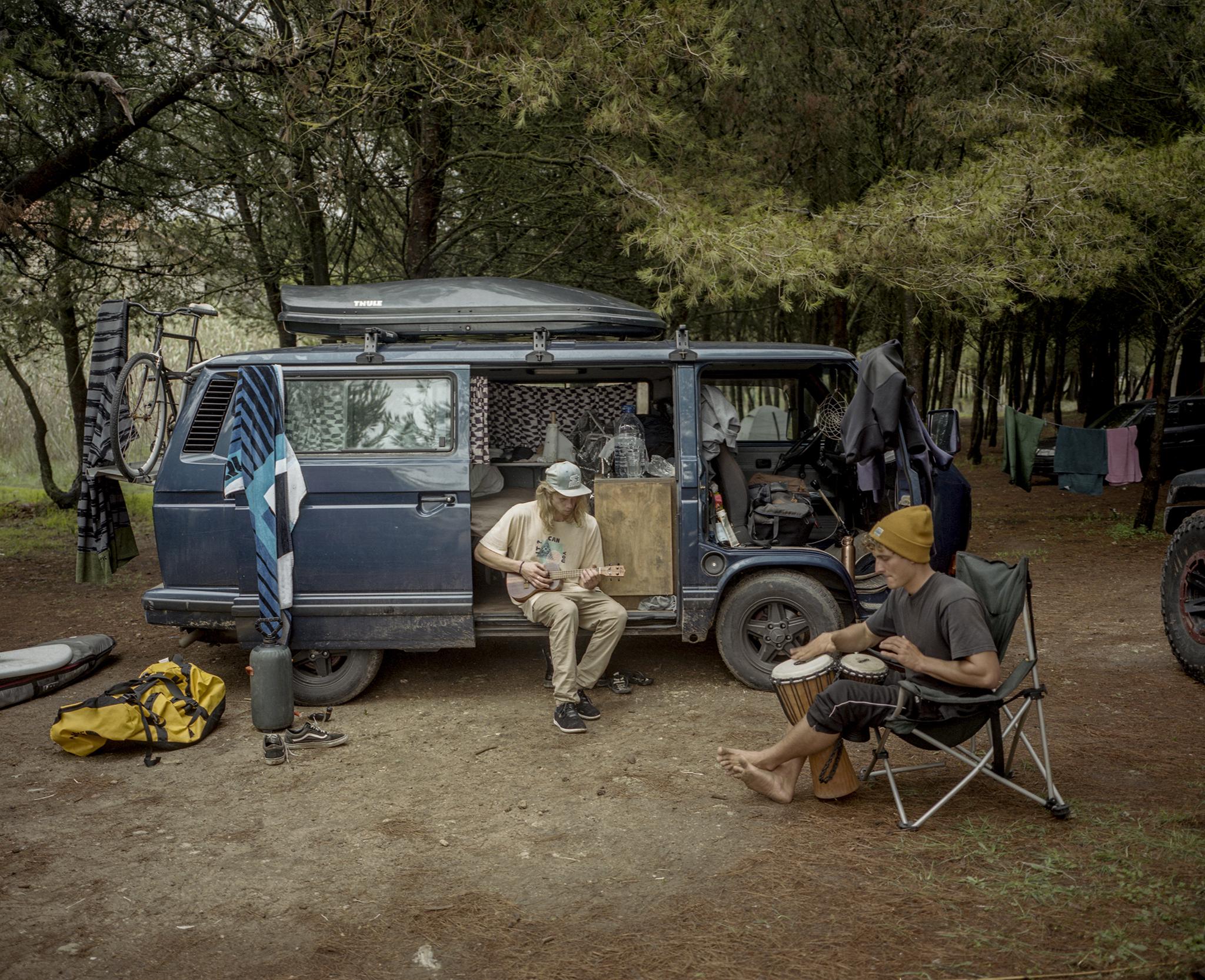 Robi egy Subaru Foresterrel indult neki a másfél hónapos útnak. Matracot vágatott az autójába, és amennyire lehetett, otthonossá tette a járgányt, hisz’ tudta: hiteles fotósorozat csak akkor készülhet, ha ő is részese a szörfösök mindennapjainak, és velük követi a napot.