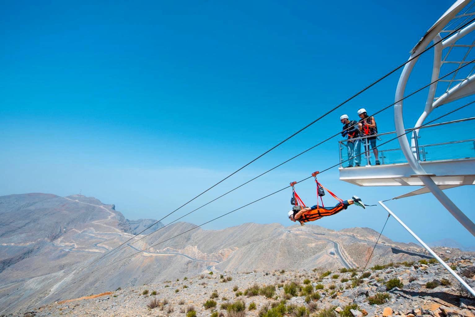 A zipline-ok világában a leghosszabb vagy leggyorsabb címet birtokolni kérészéletű siker. Ma Puerto Rico, holnap az Emírségek, holnapután talán Dubaj. Ezzel együtt is biztos azonban, hogy a legészakibb Emírségben található Jais Flight egy darabig még a leghosszabbak között lesz, ráadásul a sebességrekordokat is ostromolja: a háromperces út nagyobbik részében a szupermenpózban suhanó delikvens 120–160 kilométeres sebességgel süvít le az 1680 méter magas Jebel Jais-csúcsról. A sebességvadászat első fele után egy felfüggesztett üvegplatformra érkezünk, hogy elkészülhessenek a kötelező Insta-fotók, majd a maradék 1 km-en már nézelődősebb sebességgel folytatódik az út. A Perzsa-öböl feletti csúszáshoz 40-120 kg közé kell esnünk, és minimum 122 cm-es magasság szükséges. Ha ezeknek megfelelünk, akár párban is retteghetünk az életünkért, mivel két drótkötél fut egymás mellett. A 2018-as építésű pályán nagy hangsúlyt fektetnek a biztonságra, így indulás előtt olvassuk el a házirendet, nehogy hoppon maradjunk.