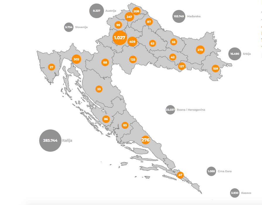A képen narancsszínű karikákban az aktív fertőzöttek számát láthatjuk. Az éppen aktuális információkért, utazás előtt érdemes felkeresni a koronavirus.hr és a Safe Croatia oldalt, ahol minden fontos tudnivalóról tájékozódhatunk: tesztelő állomásokról, előírásokról, a belépési követelményekről, a szálláshelyekre vonatkozó szabályokról, amelyeket számonkérhetünk, ha nem találjuk megfelelőnek.