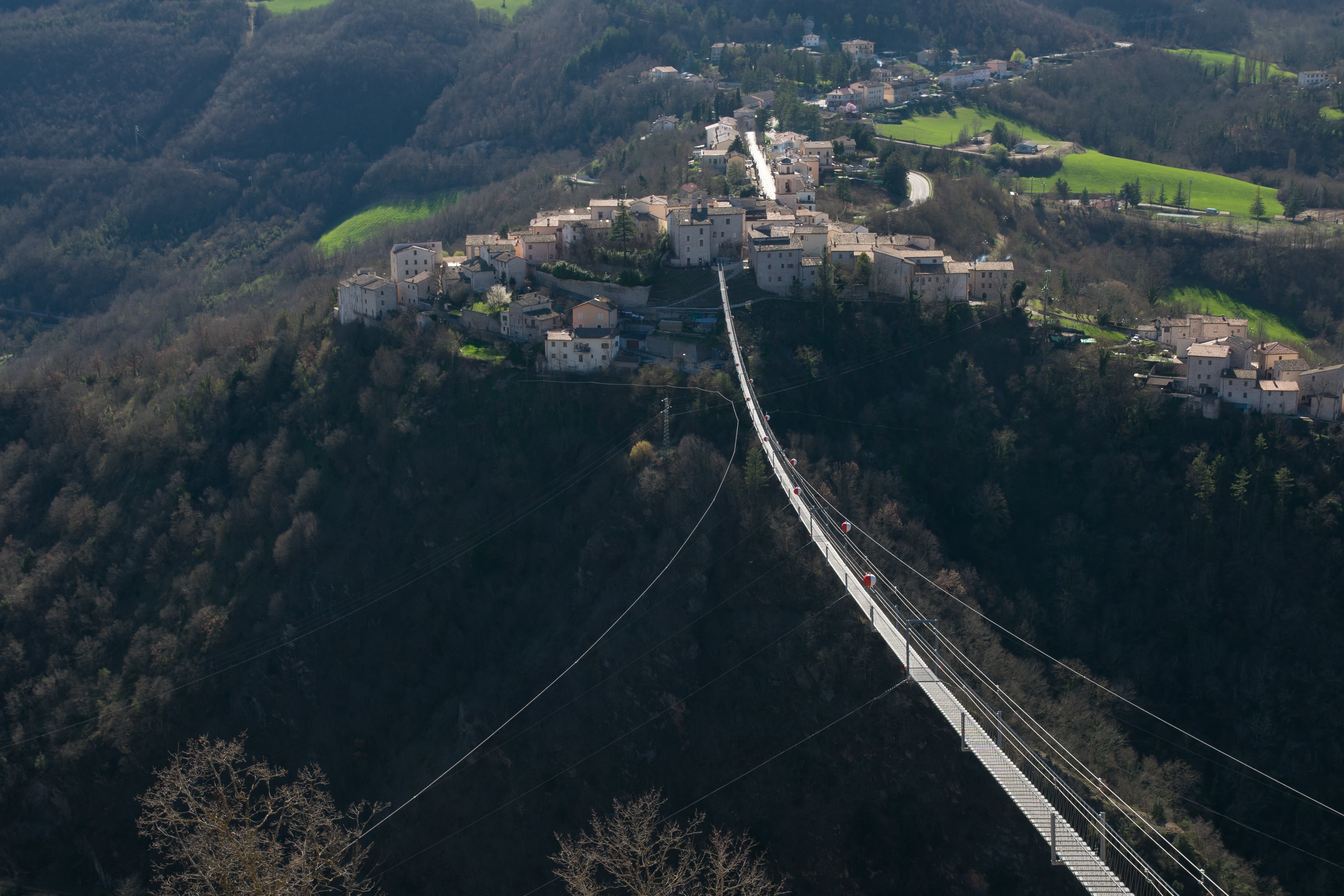 A híd Sellano középkori falva és Montesanto települése között húzódik, alig 800 méter hosszú, de így is 30-45 percig tarthat az átkelés.