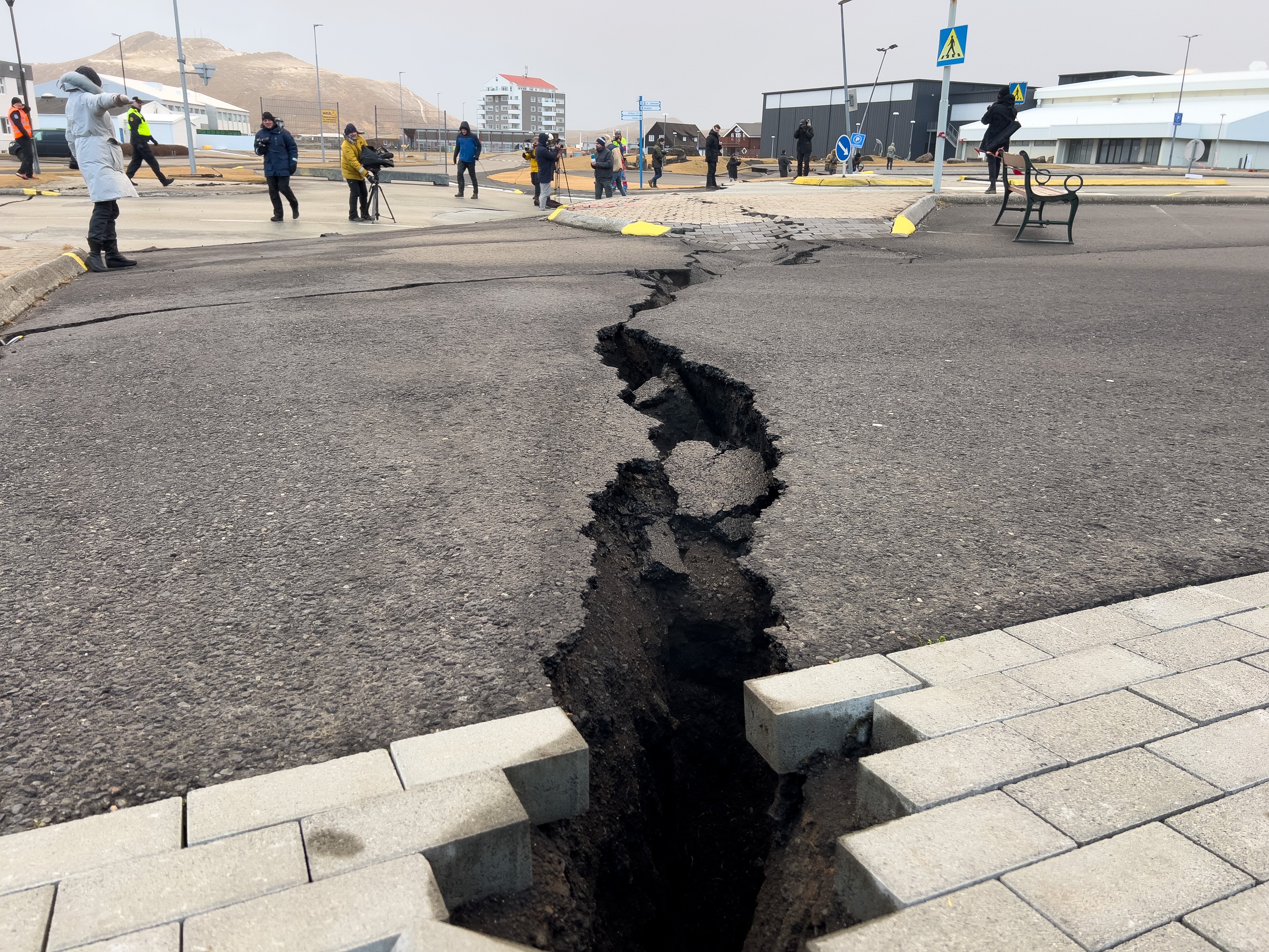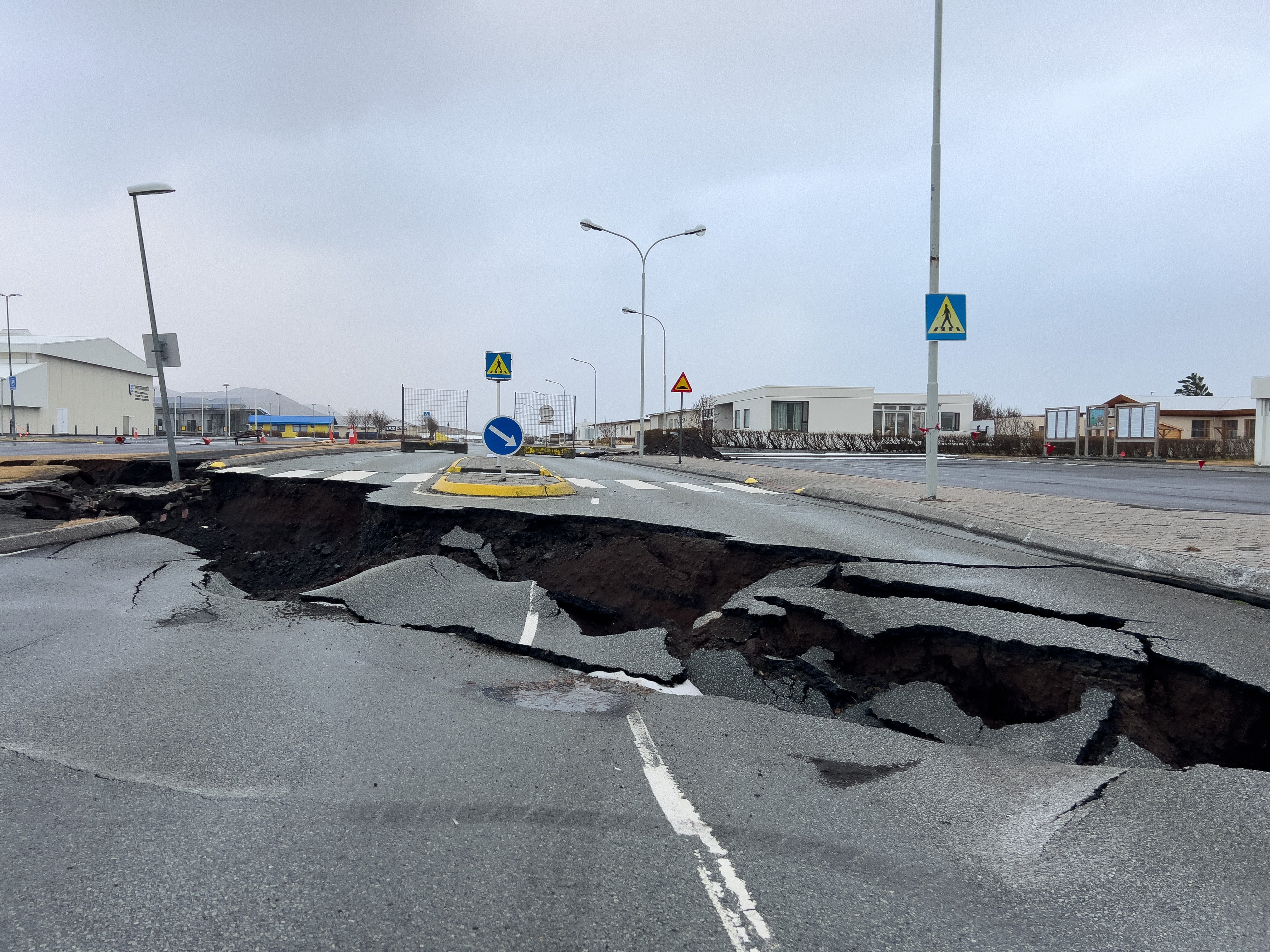 Miután Grindavík városát evakuálni kezdték a vulkánkitörés veszélye miatt, a településen több épület és utca is összedőlt, illetve felrepedt. Az elmúlt időszakban több tízezer földrengés sújtotta a szigetországot, a tudósok folyamatosan ellenőrzik a rezgéseket.