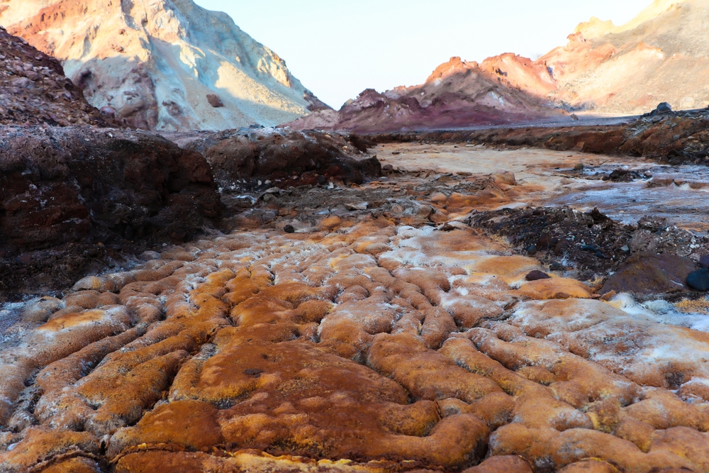 A látvány azonban itt nem ér véget. A sziget nyugati részén emelkedik a sokak által „Só Istennőjeként” emlegetett hegy, amelynek felszínét csillogó sókristályok borítják. A környéken több sóbarlang is található, ahol a falakon és a mennyezeten kirajzolódó formák szinte szoborszerűek.