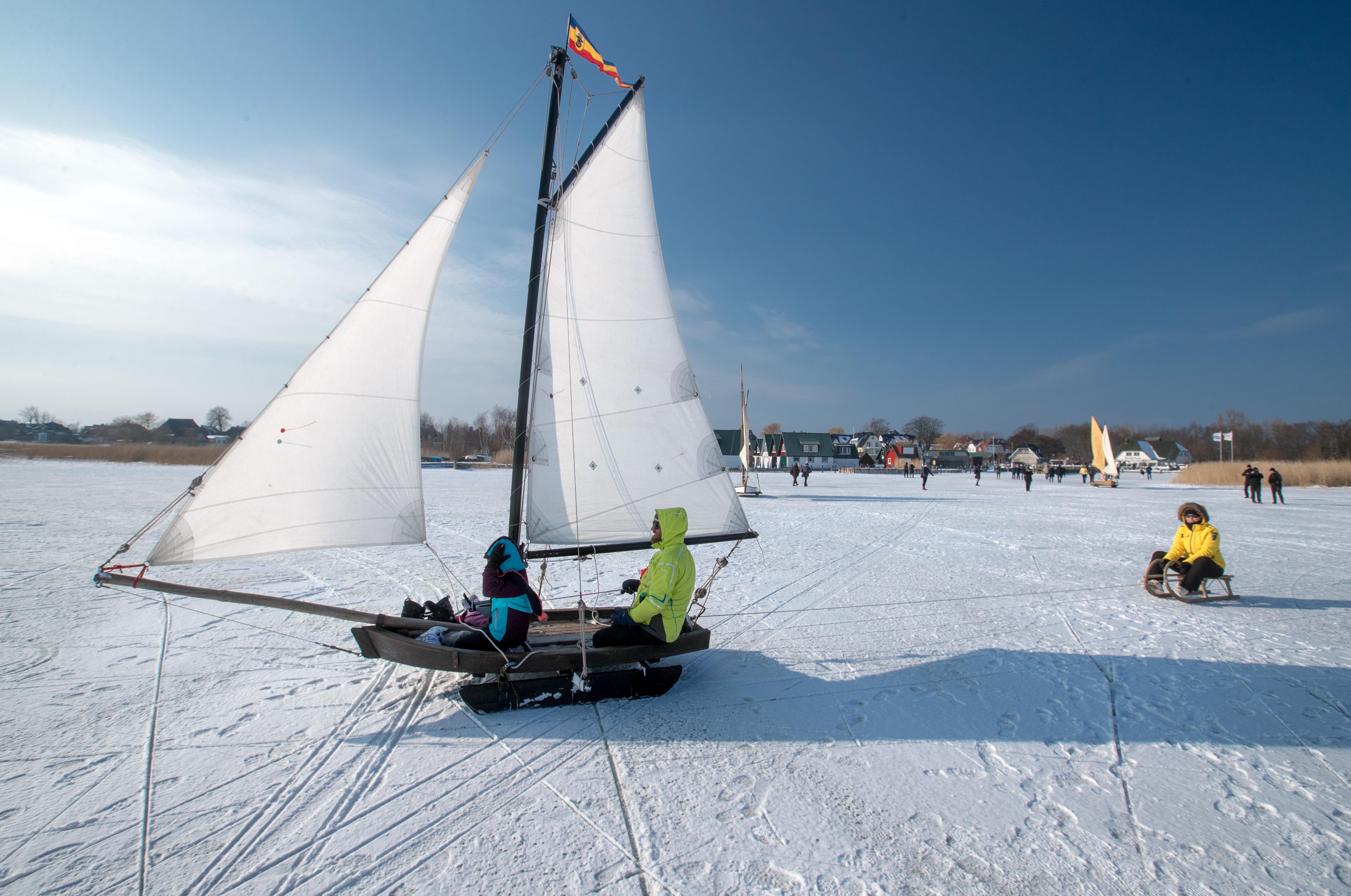 Mihez kezdjenek a lelkes vitorlázók, amikor befagynak a tavak? Egyszerű: szereljenek korcsolyapenge-szerű éleket a hajójuk alá, és lehet is folytatni a szelek megzabolását. Hasonló alkalmatosságokat néhány száz éve még szállítási célokra használtak, ma már viszont a speciálisan kialakított jégvitorlásokat aktív kikapcsolódásra vagy versenyzésre használják. A hagyományos, vizes változathoz hasonlóan itt is több hajóosztály létezik, a tipikus jégvitorlás három fémpengén siklik, amelyek közül az első irányítható. Ha megfelelő a széljárás, az eszköz akár a 100 km/h sebességre is felgyorsulhat.