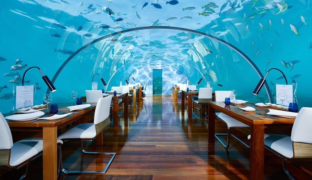 A Conrad Maldives Rangali Island szálloda az egyik kicsi szigetre önálló kis luxusbungalókat épített, a The Muraka nevű szálláshely viszont egészen más, mint a többi a szállodalánc birtokában. A Déli-Ari-atollon létrehoztak tengerparti (és alatti) villákat és egy tengeralatti éttermet is. Az Ithaa étterem készült el először, utána kezdték a hotelt megtervezni, de az sokkal bonyolultabb mérnöki munkát és kivitelezést igényelt, úgyhogy nem is helyben készítették el a víz alatti kabint, hanem a szárazföldön rakták össze, és hajóval szállítottáka szigethez. A légmentesen zárt szállodai szobát hatalmas gépek és szakképzett ipari búvárok segítségével rögzítették a vízfelszín alatt 5 méterrel. A villa egyébként 2 szintes, lent van a víz alatti hálószoba és mosdó, fent egy egészen nagy rezidencia található, hatalmas terekkel, tengerre néző fürdőszobával és úszómedencével. A Maldív-szigeten egyébként mindenki kis privát gépeken közlekedik a nemzetközi repülőtérről, hiszen minden egyes kis sziget magántulajdonban van.