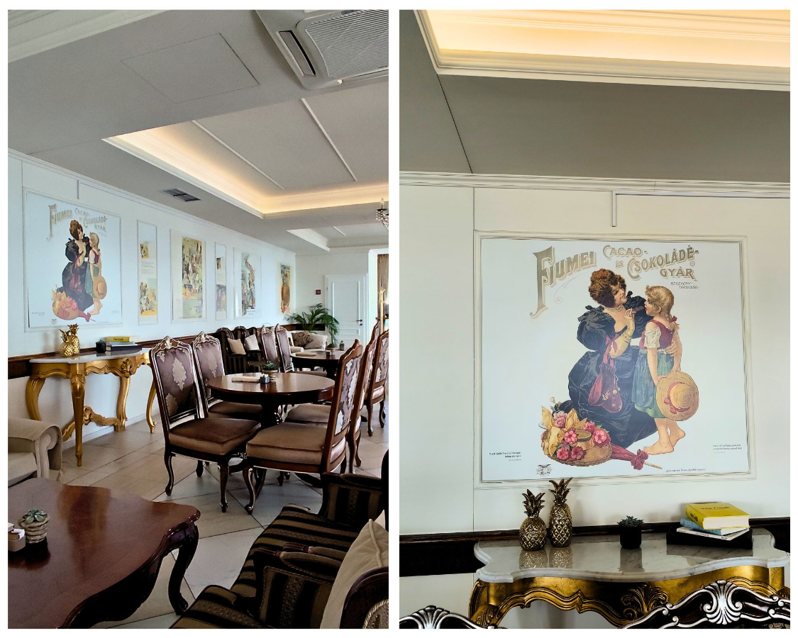 Remek példa erre a Hotel Palace Bellevue alsó szintjén található Café Strauss, amely a bécsi kávékultúrának állít emléket. Számunkra külön érdekesség, hogy a falakat még ma is a Fiumei Cacao- és Csokoládégyár korabeli, magyar nyelvű poszterei díszítik.