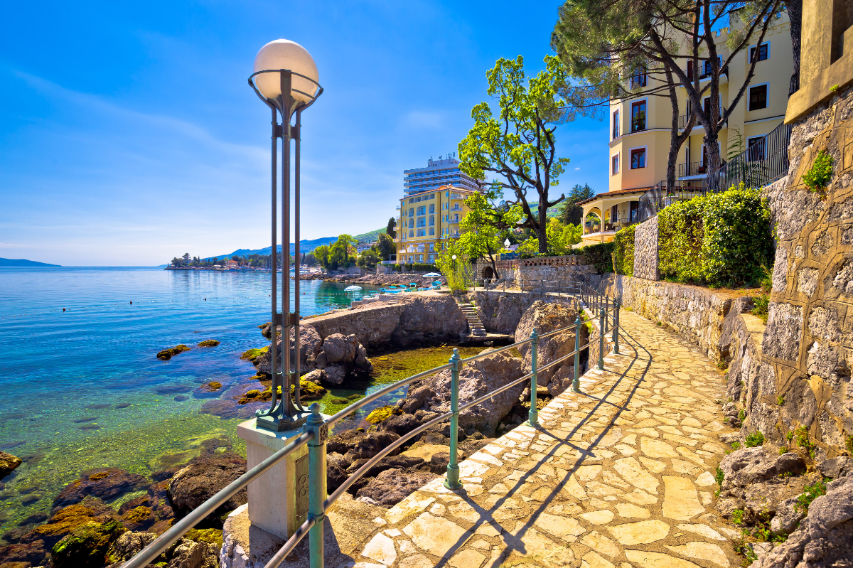 A Lungomare sétányt már a 19. században is gyógyító hatású kirándulásként ajánlották az orvosok – és a tájat elnézve ez egyáltalán nem meglepő. A tengerparti ösvényt korabeli, mediterrán stílusú villák, halászfalvak és történelmi emlékművek szegélyezik, de a közelében működött egy híres szanatórium is. Ma – megőrizve Opatija egészségfókuszú hagyományát – itt fut a Thalasso Cardio Walk nevű sportprogram, de sokan egyszerűen csak késődélutáni andalgásra vagy reggeli sétákra használják.