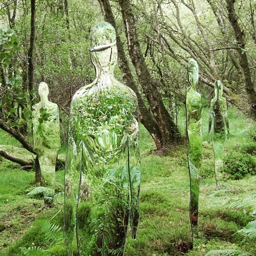 A tükörszobrai a legjobb példák erre, hiszen amikor az erdőben állította ki azokat, akkor a visszatükröződésben is többet láttunk a természetből: nyáron sűrű zöld lombokat, ősszel színpompás hulló leveleket, megint máskor a tengerparton kék eget, fehér felhőkkel, és ugyanazon napon este szürkületet és sötétséget. A folyamatos interakció, a reflektálás mindig más, ezért sosem unalmasak, egyhangúak a szobrai, mert maguktól megújulnak a környezettől. 2019-ben a mexikói Ondalinda fesztiválon éjjel, színes megvilágításban állították ki a tükörszobrokat, és a látványtól máris egy sci-fiben érezhettük magunkat.