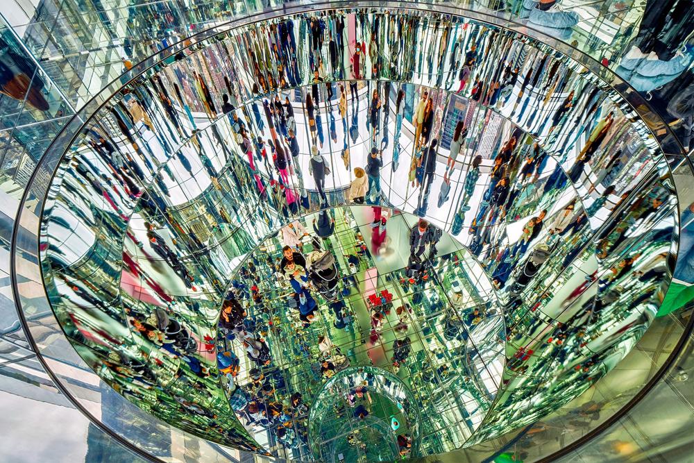„A Summit One Vanderbilt egy olyan összetett installáció, amely arra készteti az ott lévőket, hogy megkérdőjelezzék az épített környezetről, a körülöttünk lévő világról és az érzéki valóságról alkotott képüket." – írják a Summit One Vanderbilt oldalán. Mit jelent ez? Belépünk ebbe a hatalmas üvegtoronyba és a panorámán kívül fogalmunk sincs, hogy mit látunk, hány embert, hány emeletet van alattunk, mi üveg és mi tükör.