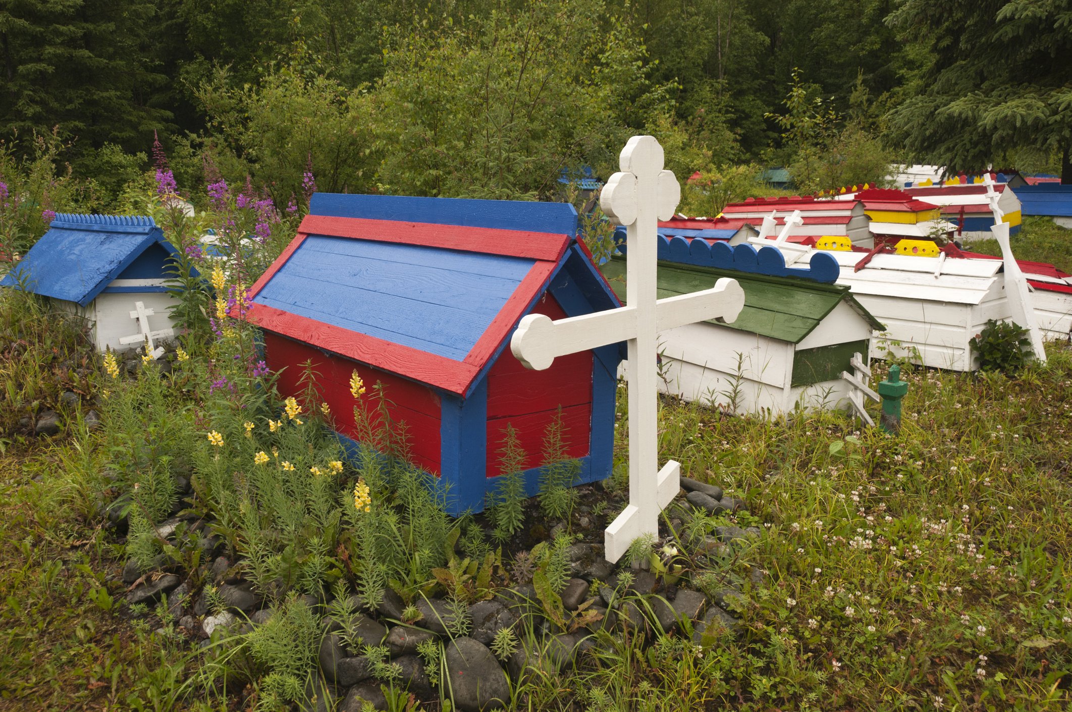 Az Egyesült Államok apró falujában, Eklutnában található egy olyan temető, melyet sírkövek helyett pici, színes házikók díszítenek.