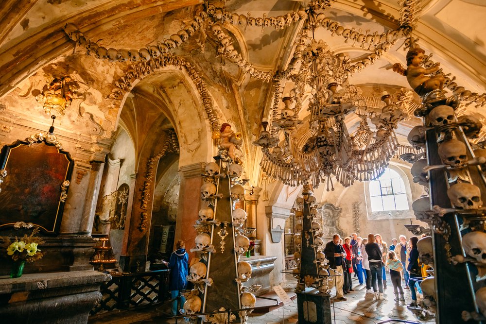 Prágától keletre, Csehország közepén található a világ egyik legfurcsább temetője. A római katolikus kápolnában és csontházban nem mindennapi látvány fogadja a látogatókat: az osszárium ugyanis több mint 40 ezer csontvázat tartalmaz, melyek „művészi elrendezésben” díszítik az épületet. A hátborzongató „dekoráció” története az 1400-as években kezdődött, amikor is a pestisjárvány és a huszita háborúk miatt több ezer embert temettek el ezen a területen.