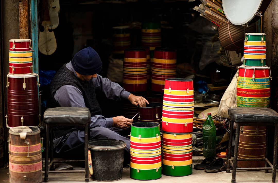 A színek és formák kombinációja végtelen, a fém, fa vagy cseréptestre általában kecskebőrt feszítenek.