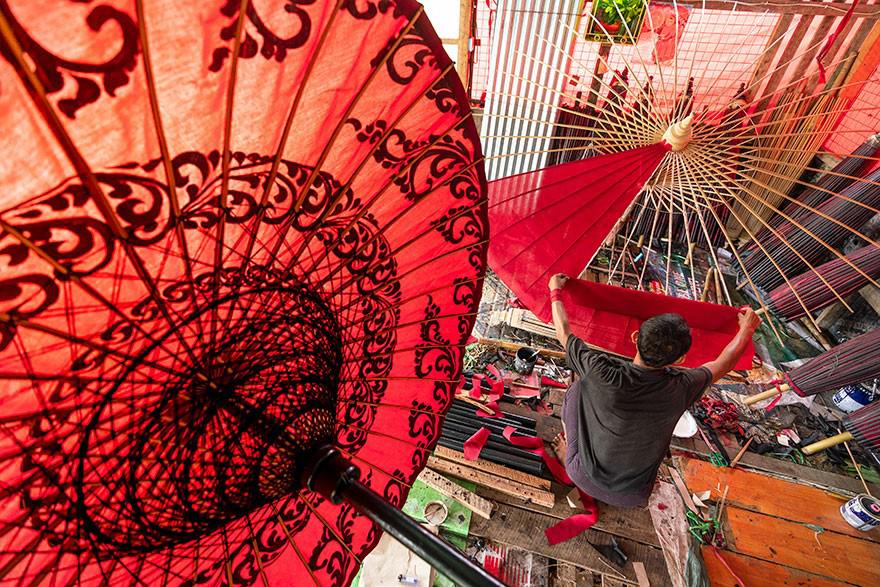 A napernyők összerakása, és a textil festése is külön-külön szakma, minden gyártási folyamatért külön csoport felelős.