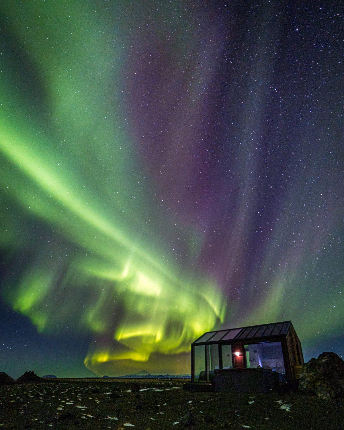 Az izlandi Hellában, egy „lávasivatag" közepén található a két üvegház, amelyekből tiszta kilátás nyílik az égre, miközben élvezhetjük a meleg beltér kényelmét. Azok a vendégek, akik valóban a szabad ég alatt szeretnék bámulni az eget, elmerülhetnek az üvegkalitkák mellett található pezsgőfürdőben. Természetesen a jacuzziban is olyan meleg a víz, hogy egy percig sem kell senkinek fagyoskodnia odakint.